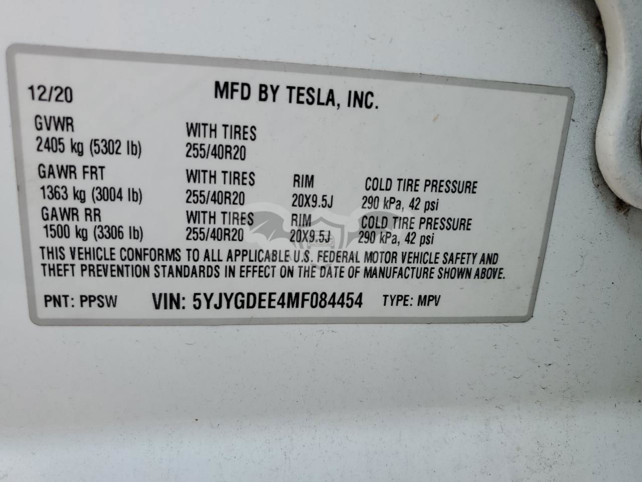 • VIN: 5YJYGDEE4MF084454