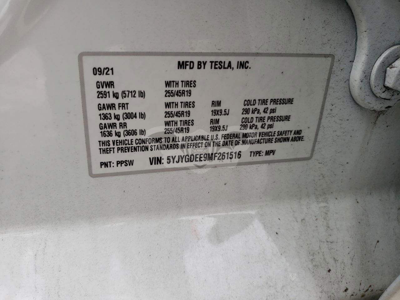 • VIN: 5YJYGDEE9MF261516