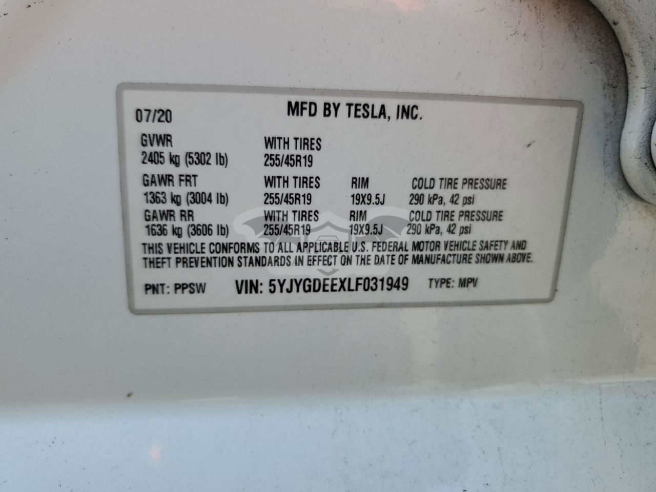 • VIN: 5YJYGDEEXLF031949