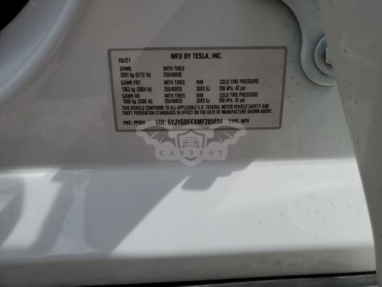 • VIN: 5YJYGDEEXMF285694