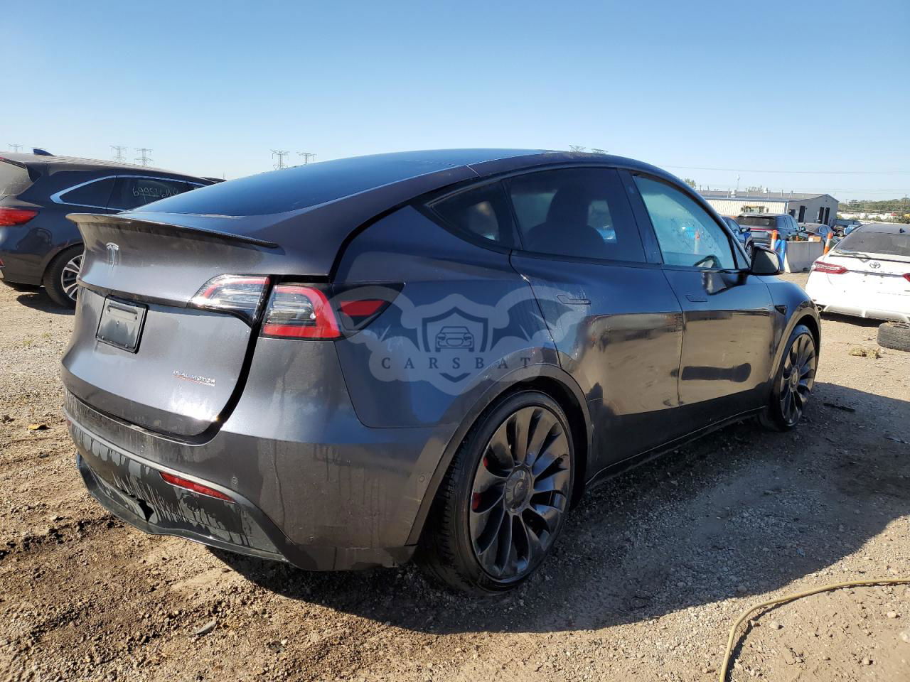 Szary Tesla Model Y 2021 roku | Elektryczny