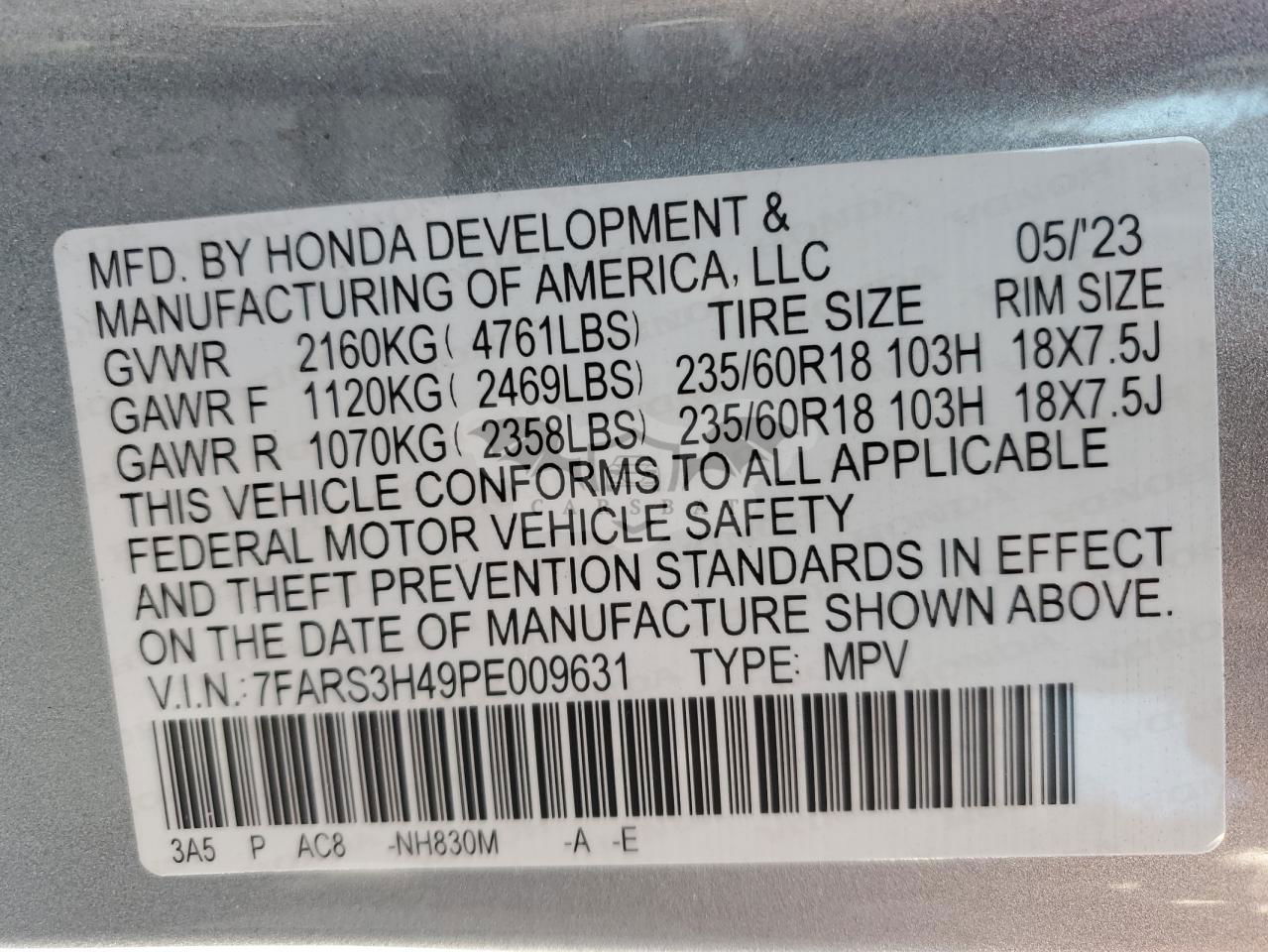 • VIN: 7FARS3H49PE009631