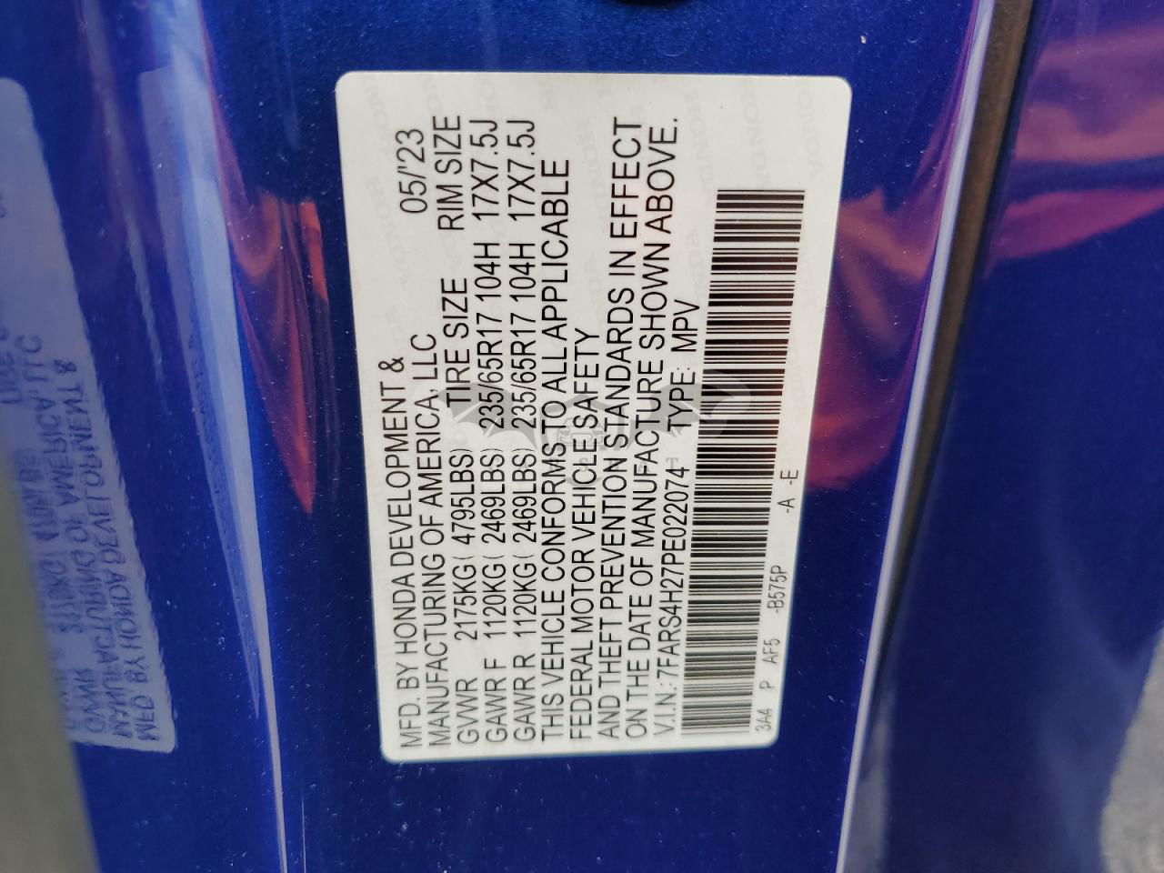 • VIN: 7FARS4H27PE022074