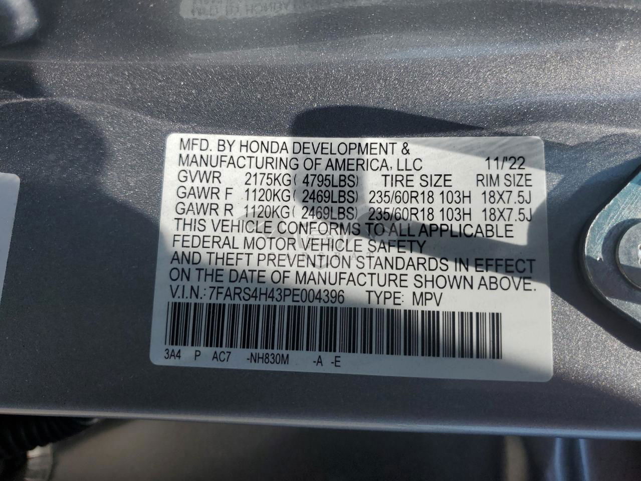 • VIN: 7FARS4H43PE004396