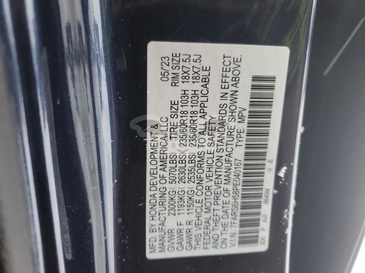 • VIN: 7FARS6H58PE040167