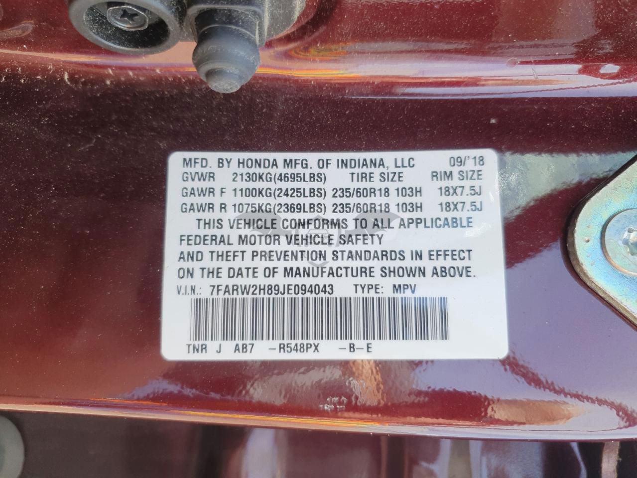 • VIN: 7FARW2H89JE094043