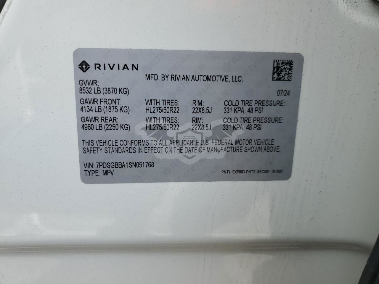 • VIN: 7PDSGBBA1SN051768