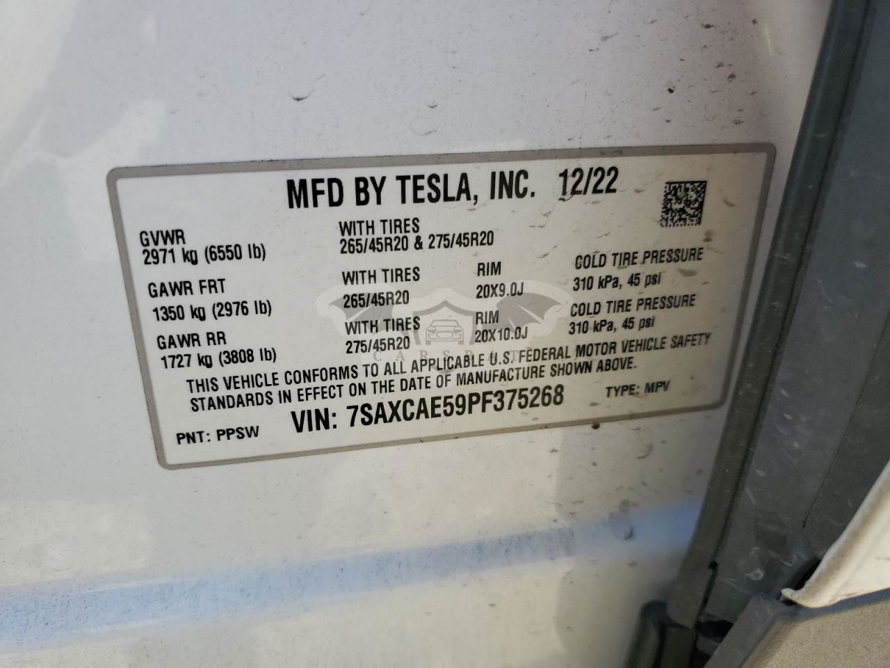 • VIN: 7SAXCAE59PF375268