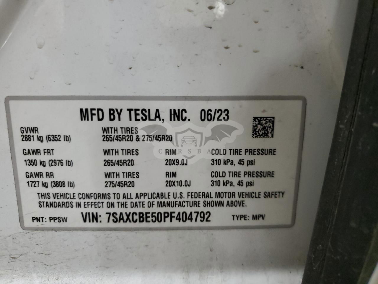 • VIN: 7SAXCBE50PF404792