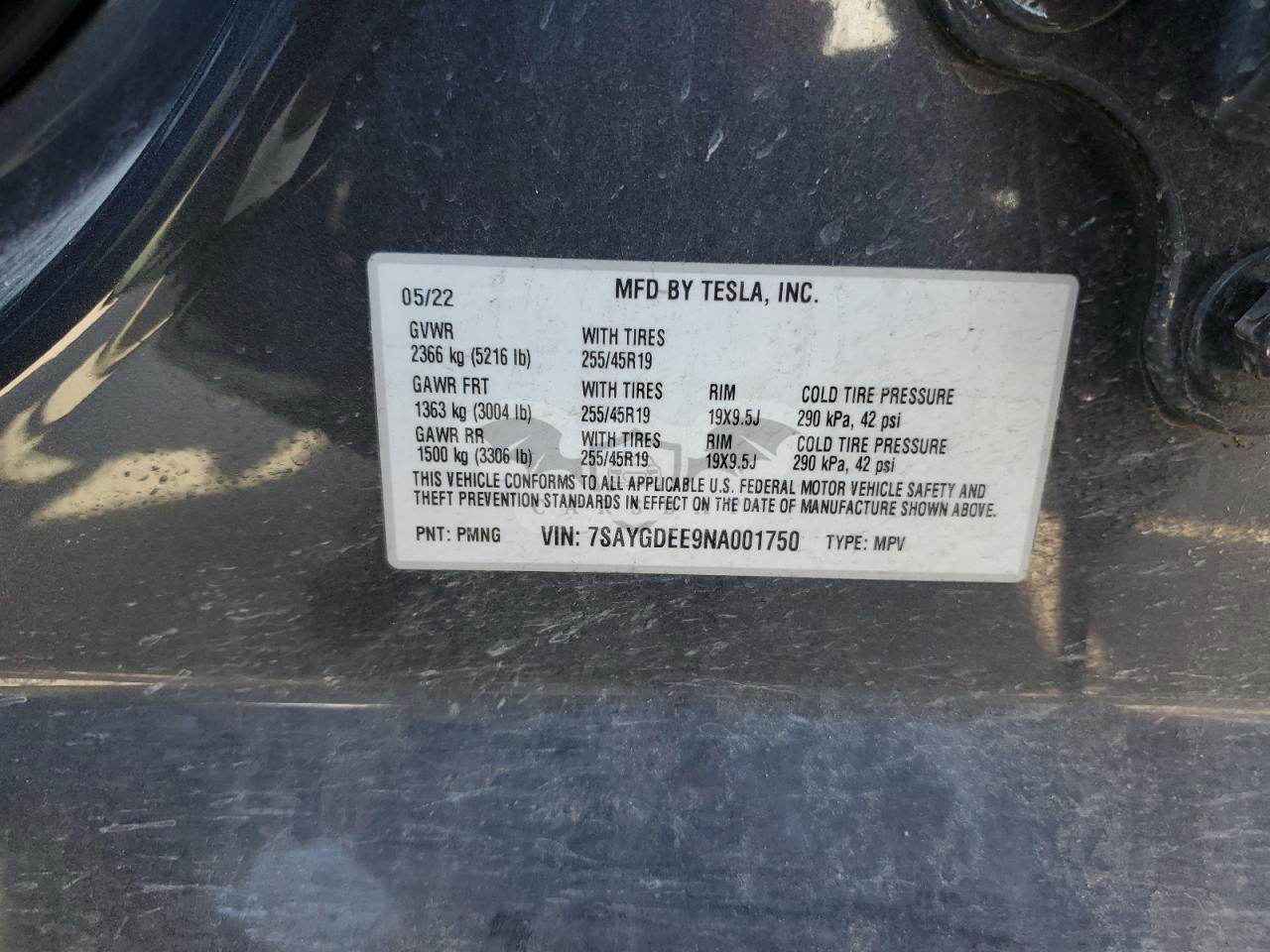 • VIN: 7SAYGDEE9NA001750