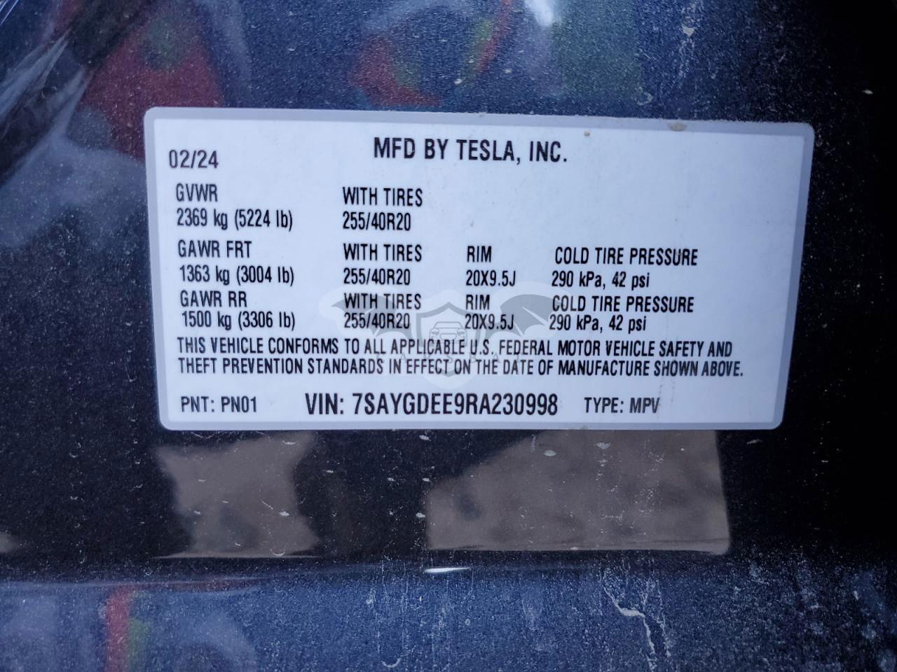 • VIN: 7SAYGDEE9RA230998
