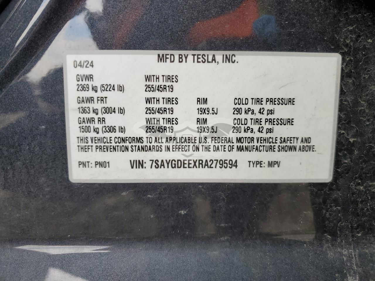 • VIN: 7SAYGDEEXRA279594