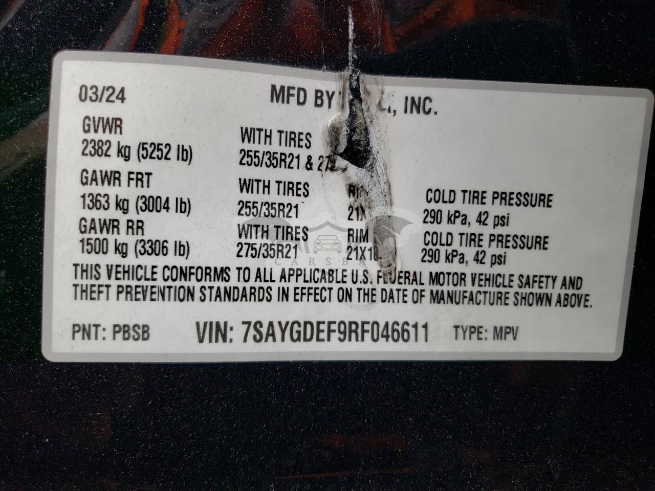 • VIN: 7SAYGDEF9RF046611
