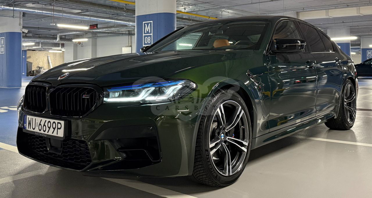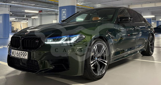 Zielony BMW M5 Competition 2023 roku | Benzyna