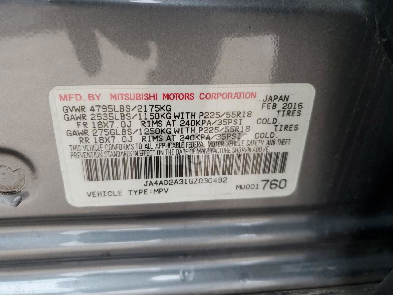 • VIN: JA4AD2A31GZ030492