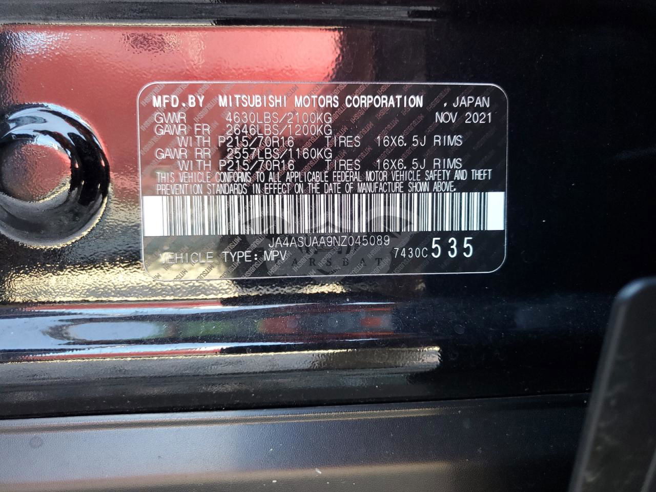 • VIN: JA4ASUAA9NZ045089