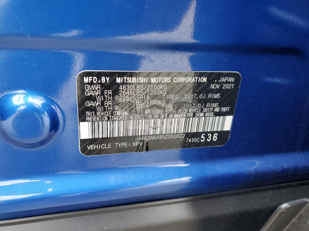 • VIN: JA4ASWAA8NZ050022