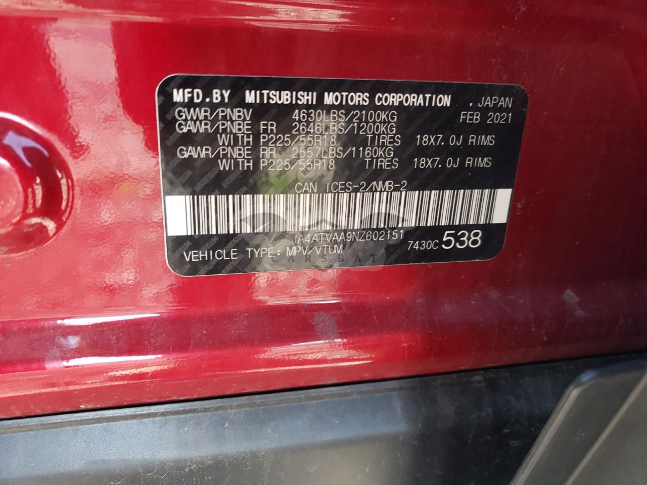 • VIN: JA4ATVAA9NZ602151