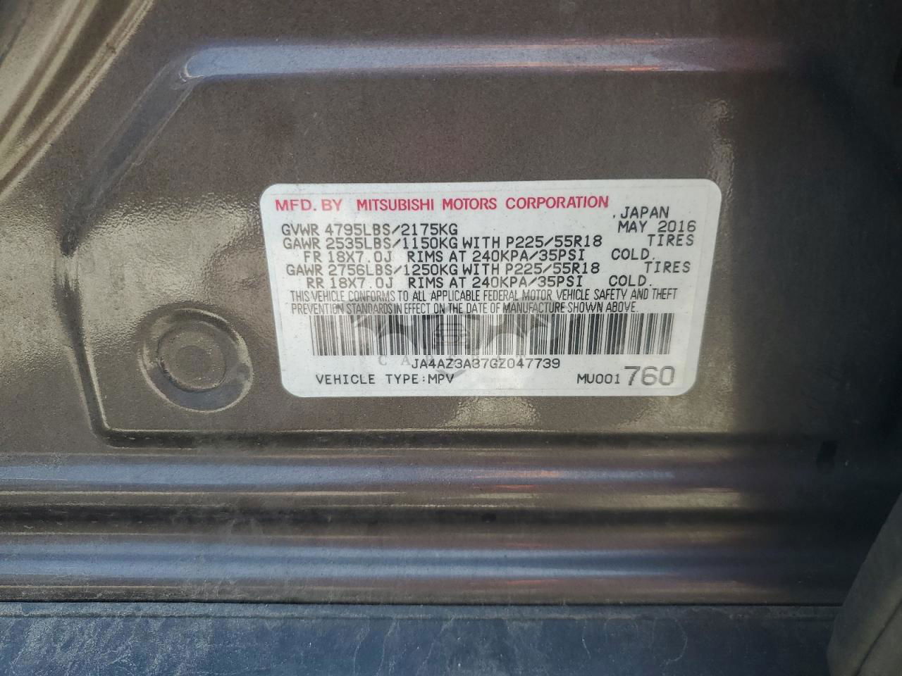 • VIN: JA4AZ3A37GZ047739