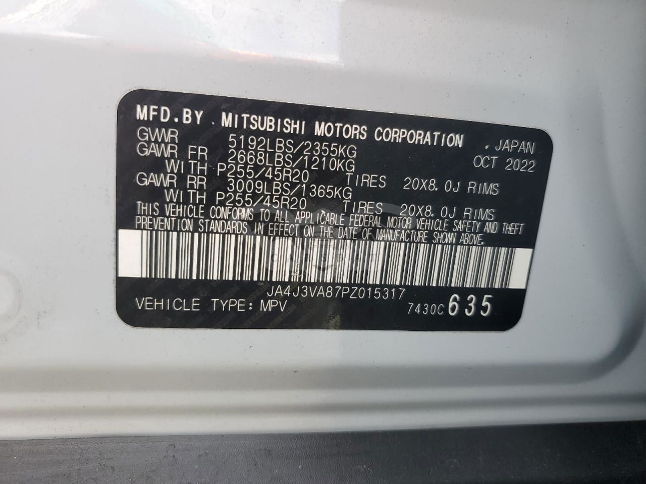 • VIN: JA4J3VA87PZ015317