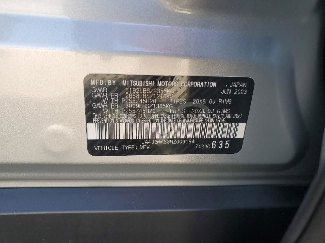 • VIN: JA4J3WA88RZ003184