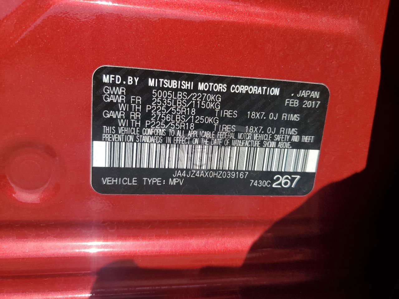 • VIN: JA4JZ4AX0HZ039167