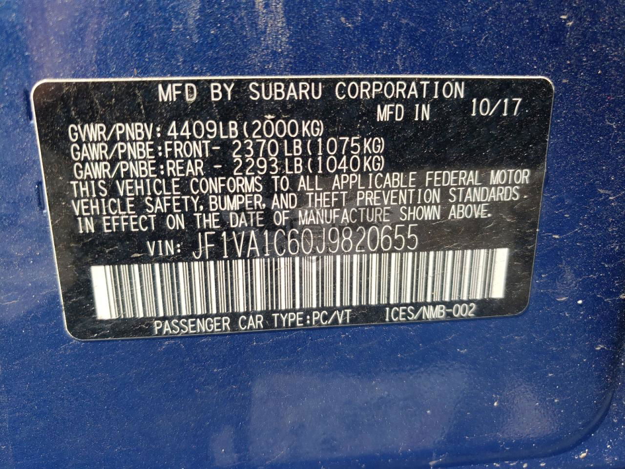 • VIN: JF1VA1C60J9820655
