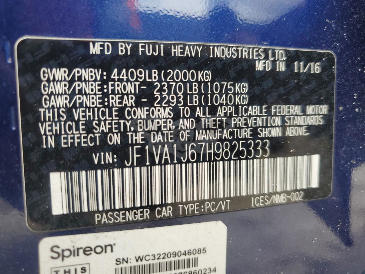 • VIN: JF1VA1J67H9825333