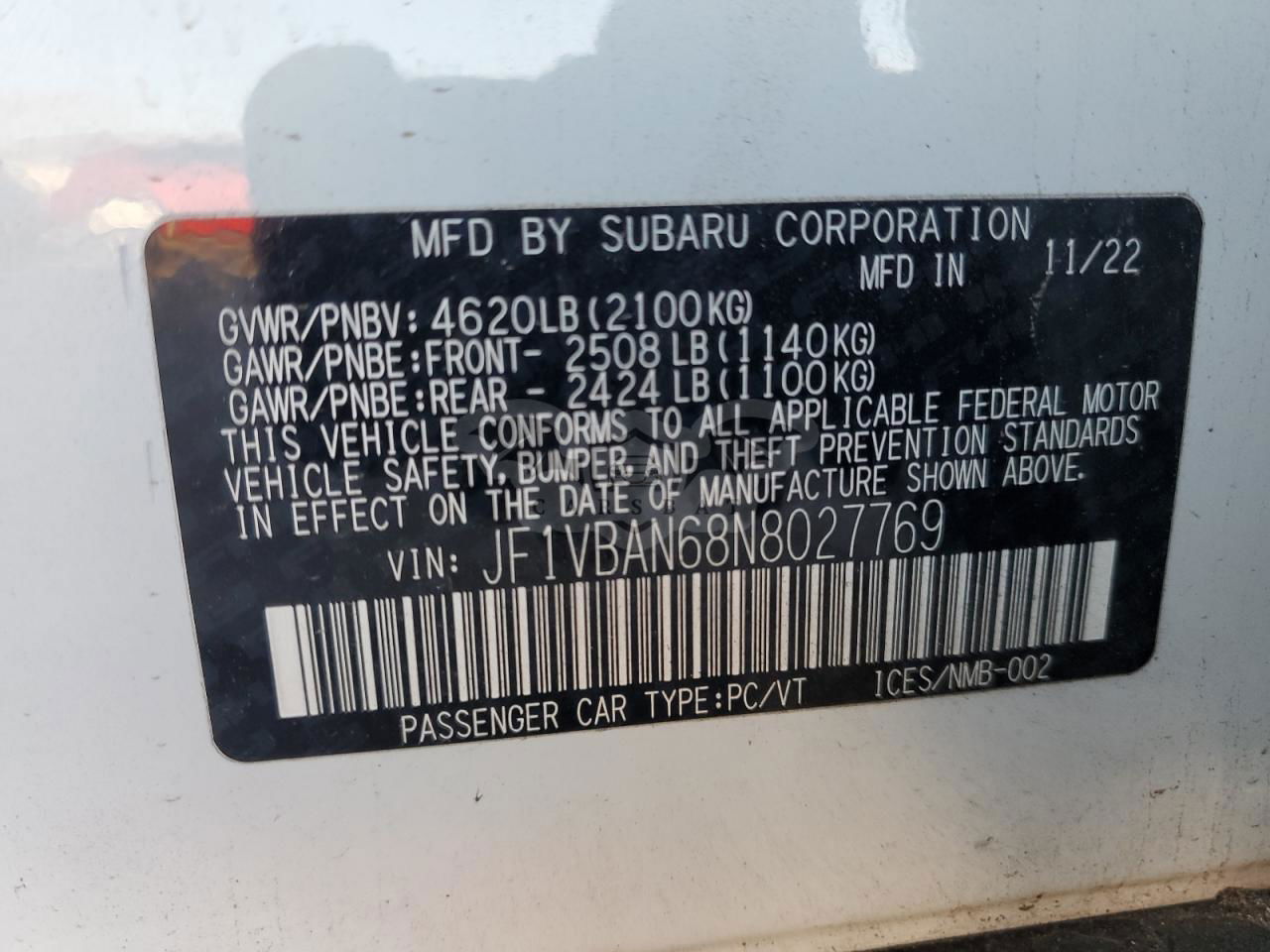 • VIN: JF1VBAN68N8027769