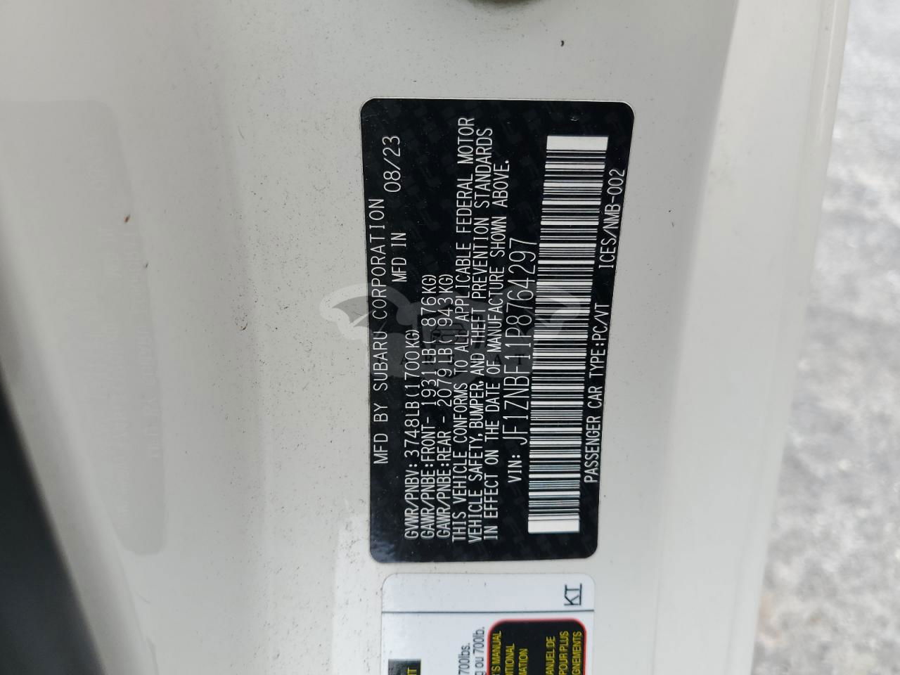 • VIN: JF1ZNBF11P8764297
