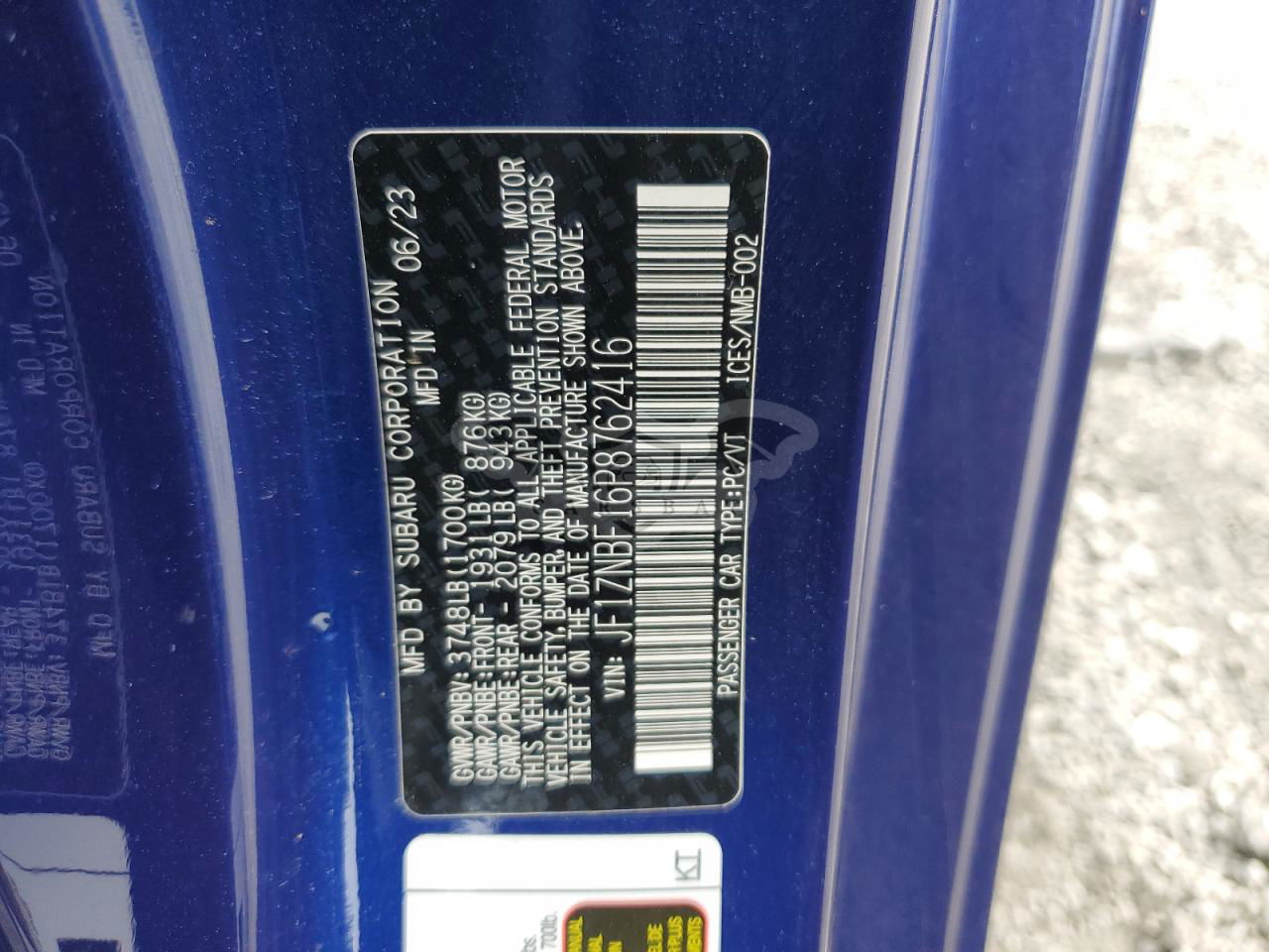 • VIN: JF1ZNBF16P8762416