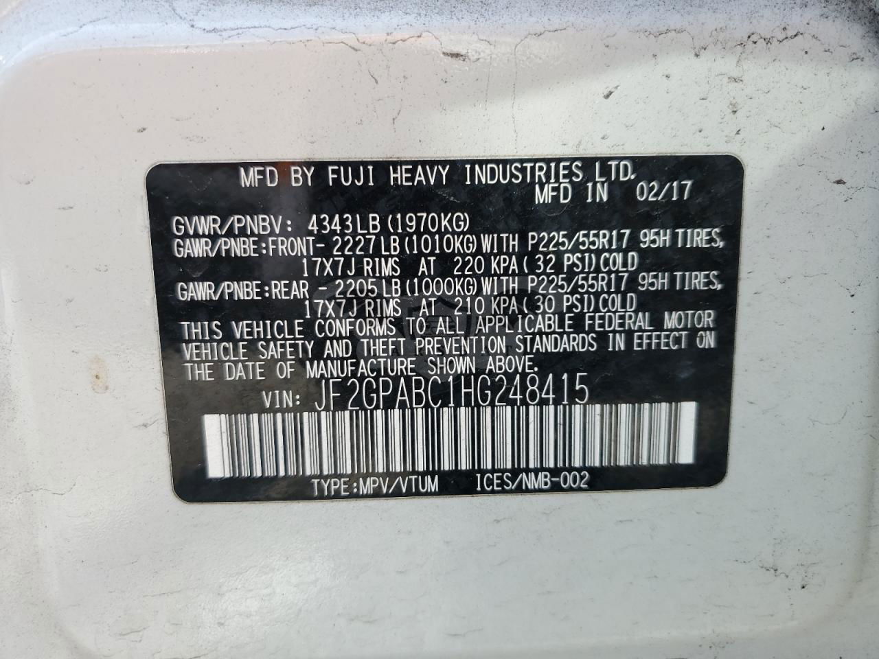 • VIN: JF2GPABC1HG248415