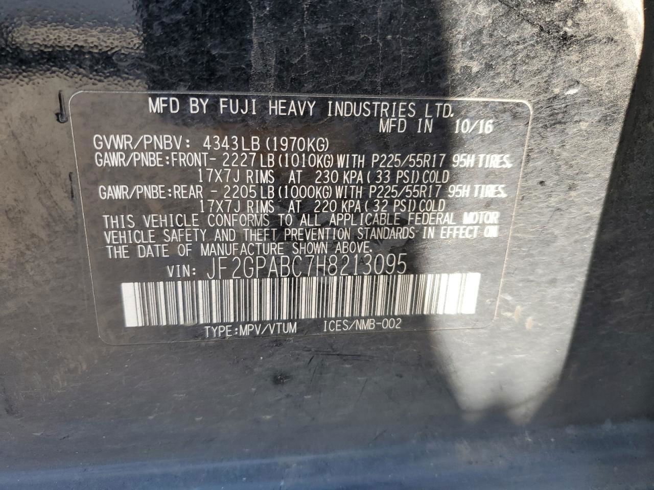 • VIN: JF2GPABC7H8213095