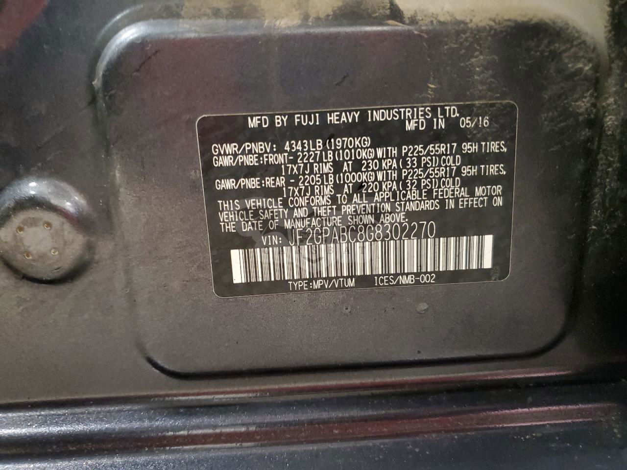 • VIN: JF2GPABC8G8302270
