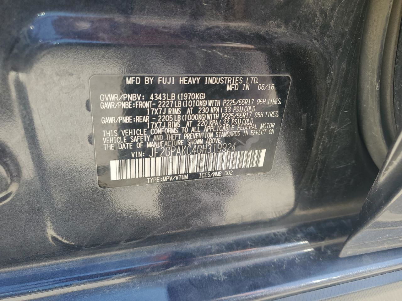 • VIN: JF2GPAKC4GH319924