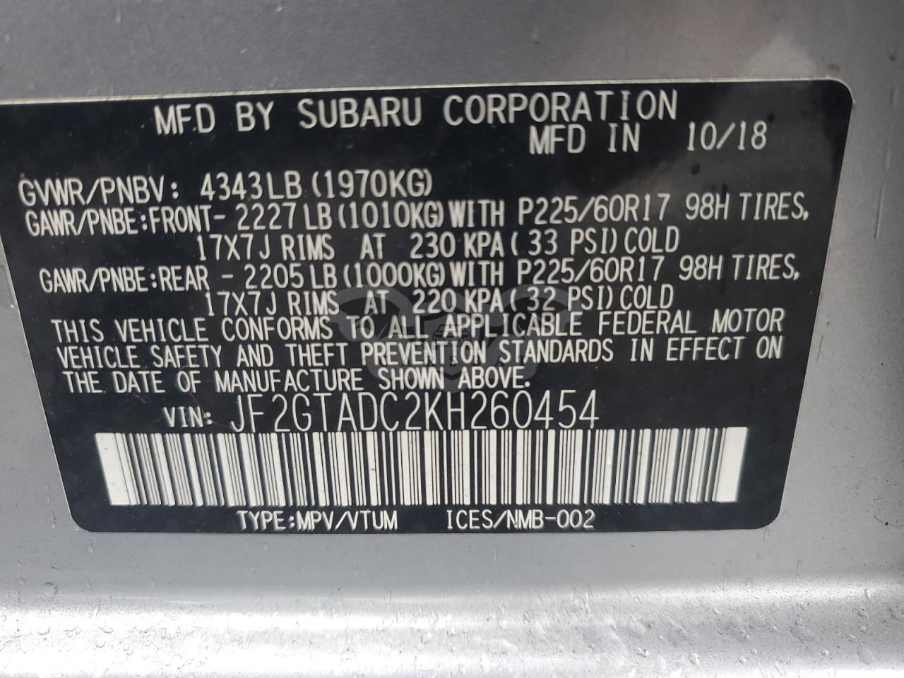• VIN: JF2GTADC2KH260454