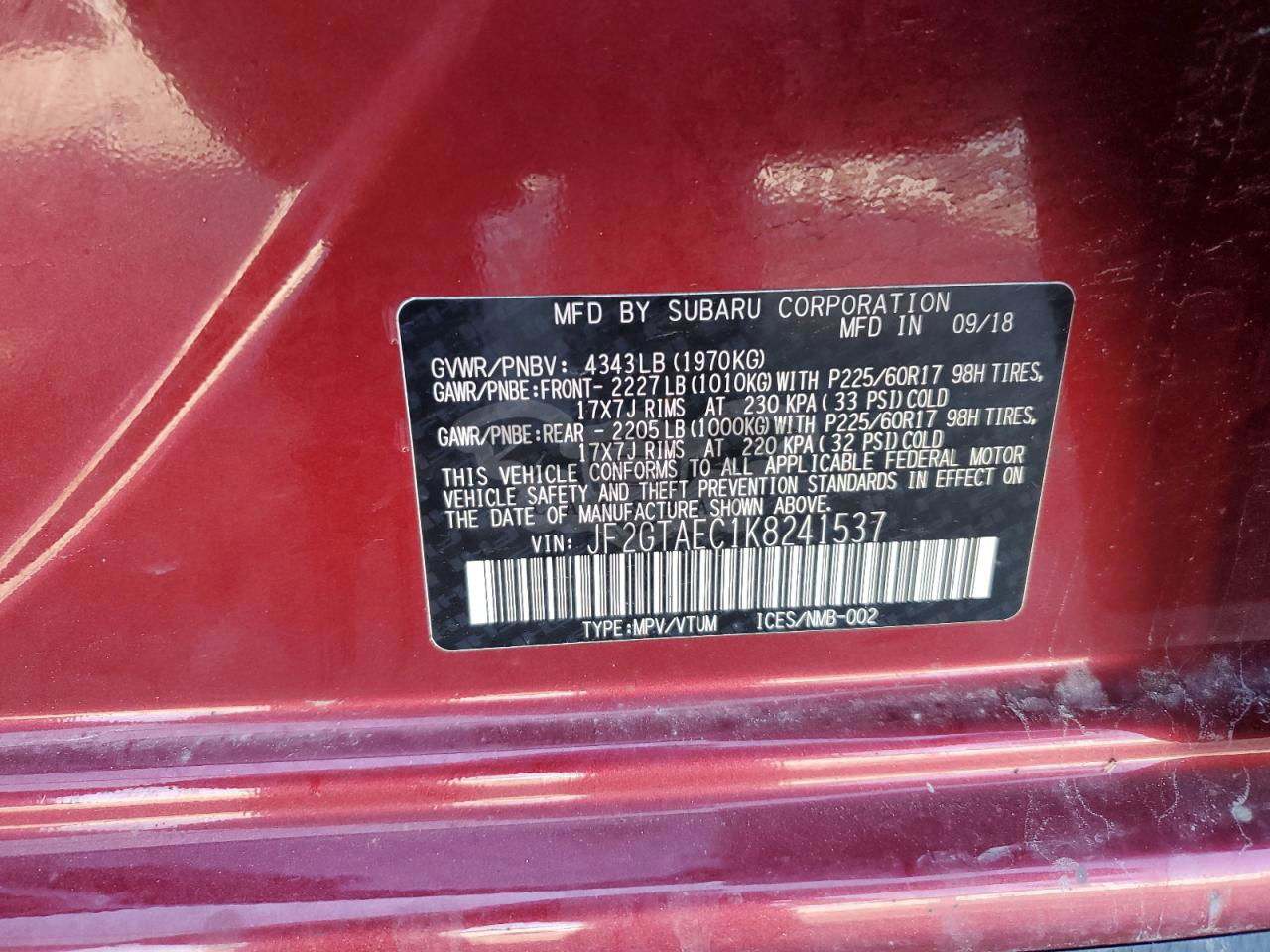 • VIN: JF2GTAEC1K8241537