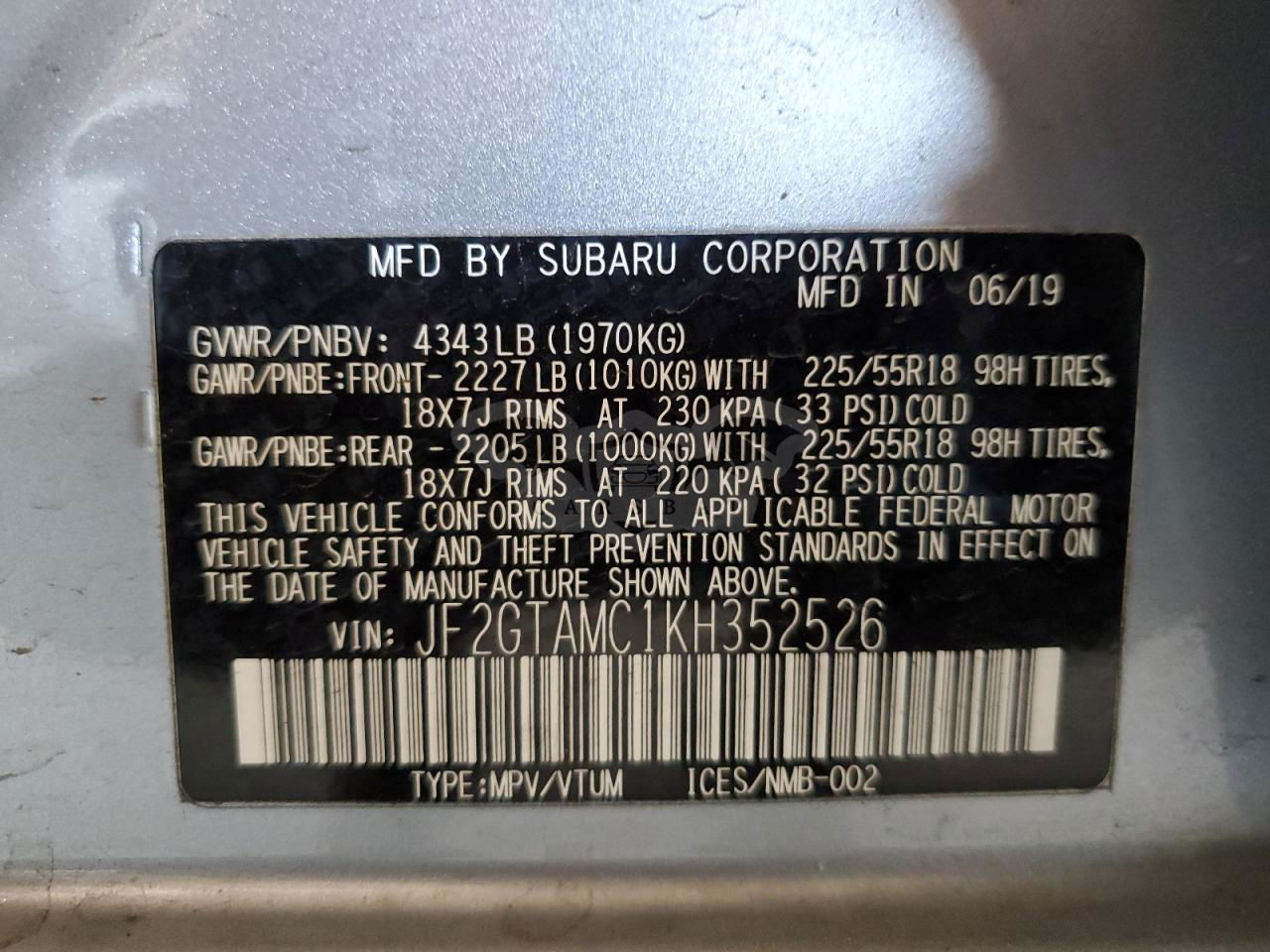 • VIN: JF2GTAMC1KH352526