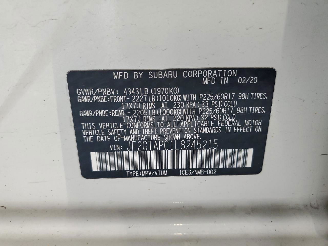 • VIN: JF2GTAPC1L8245215
