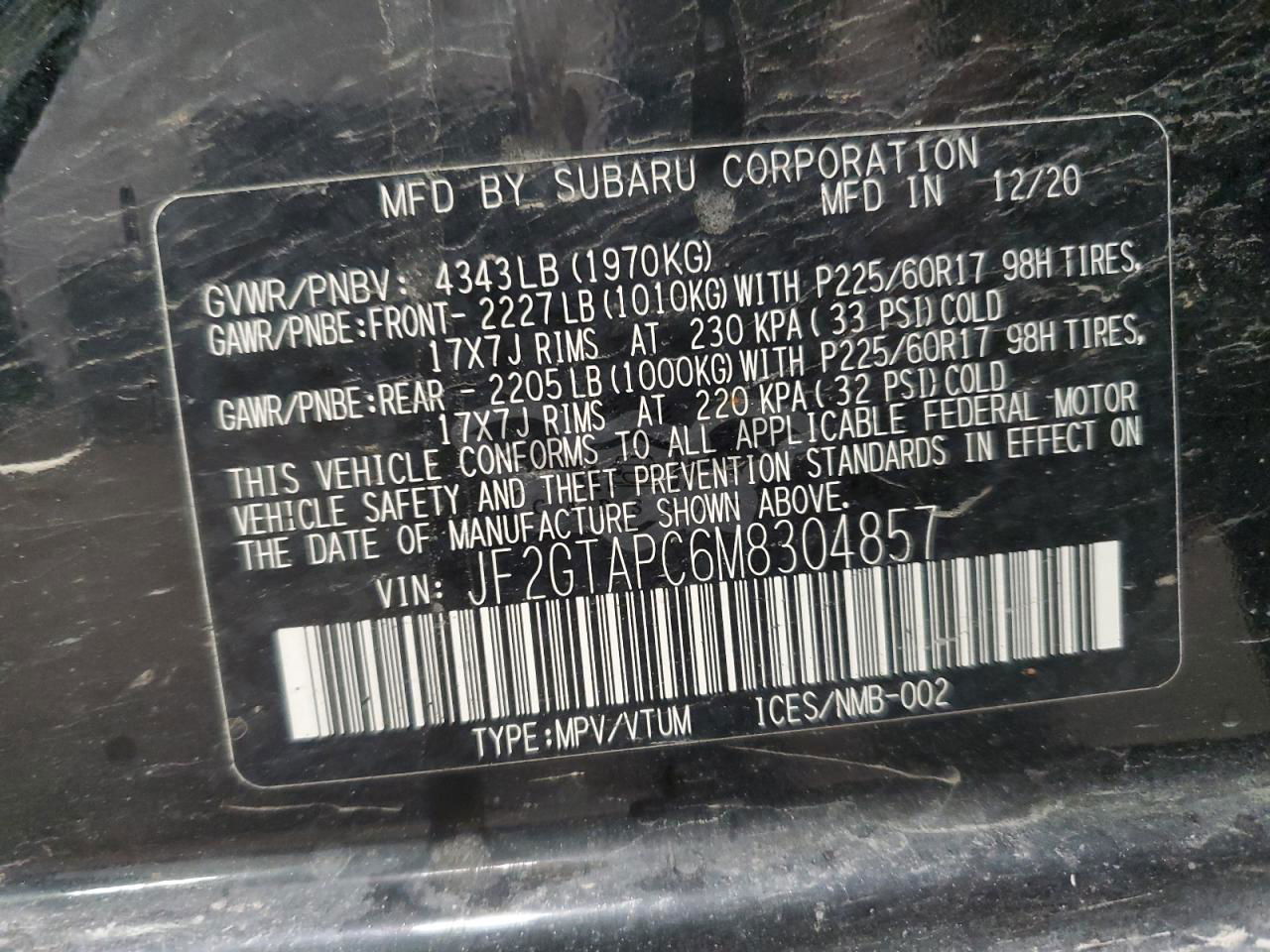 • VIN: JF2GTAPC6M8304857
