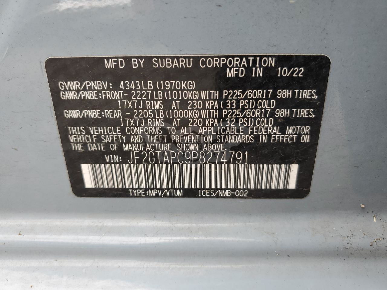 • VIN: JF2GTAPC9P8274791