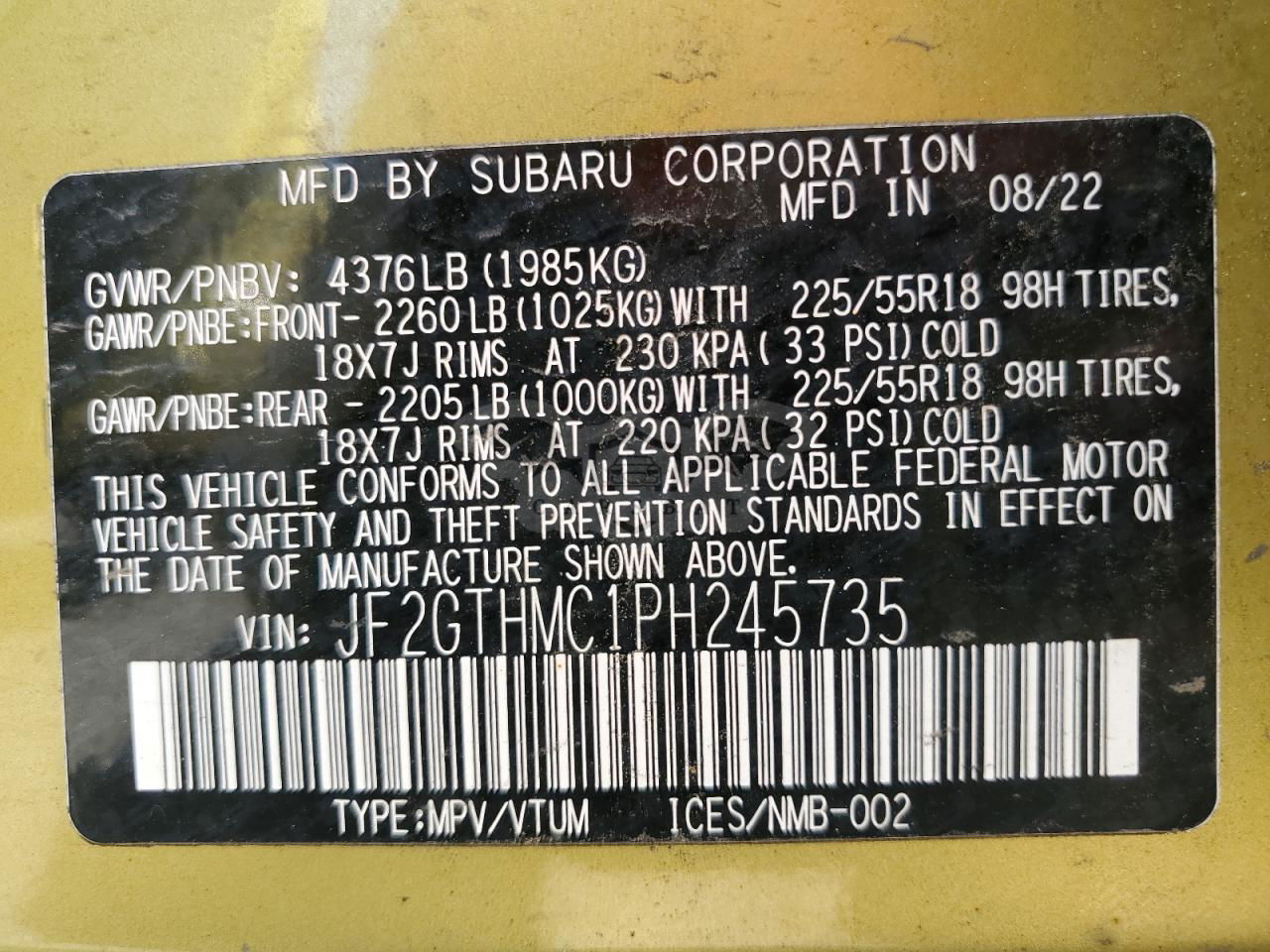 • VIN: JF2GTHMC1PH245735