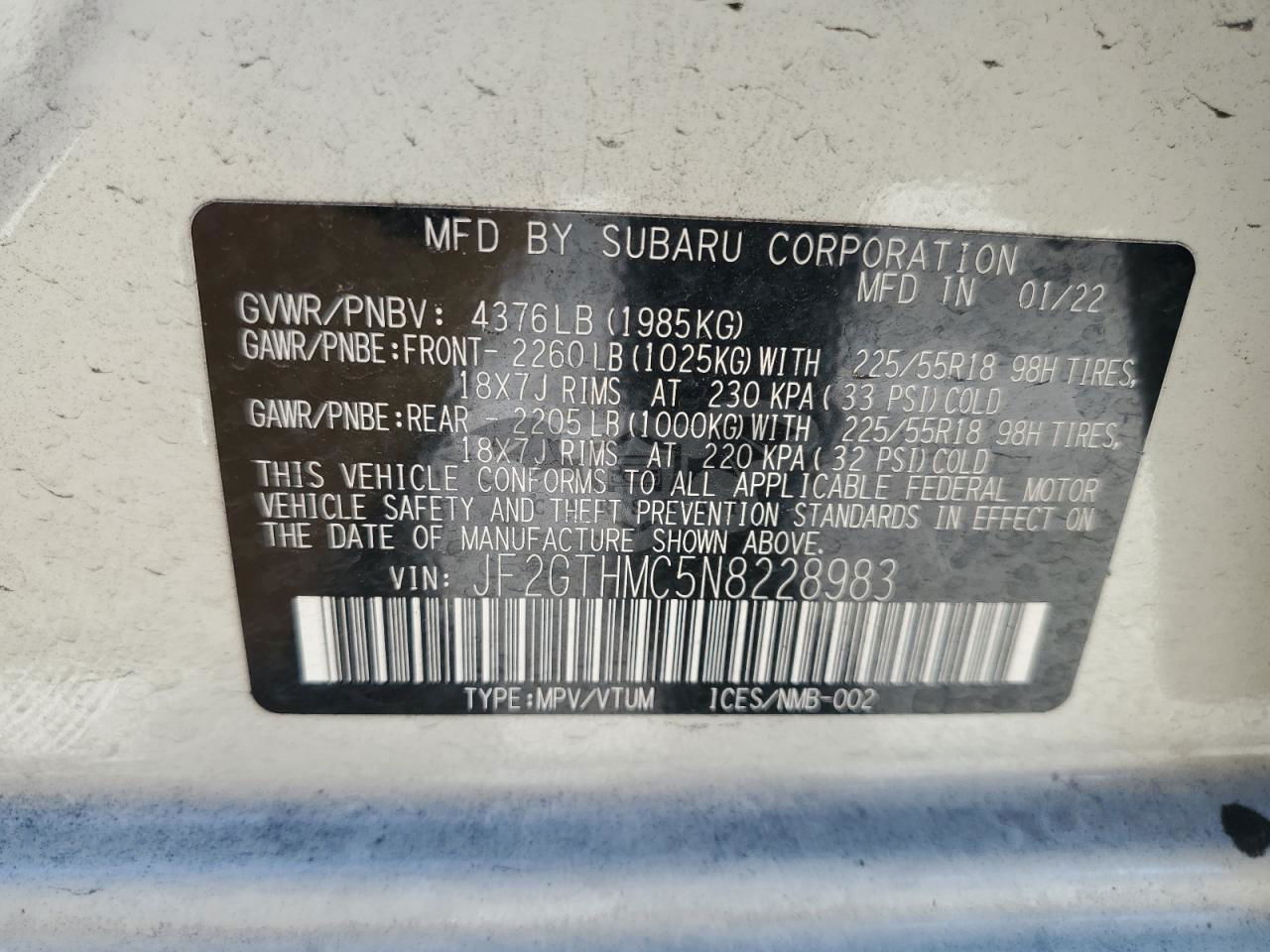• VIN: JF2GTHMC5N8228983