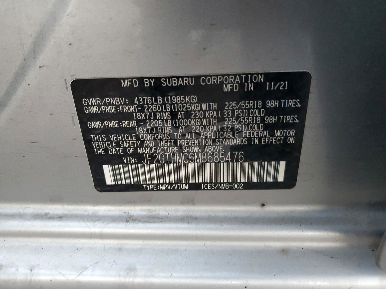 • VIN: JF2GTHMC6M8685476
