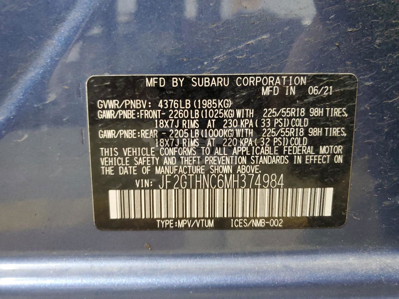 • VIN: JF2GTHNC6MH374984