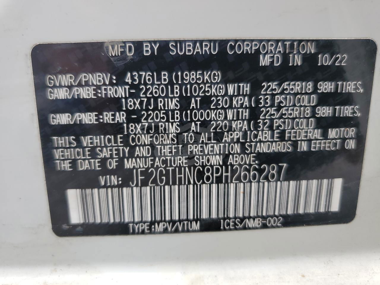 • VIN: JF2GTHNC8PH266287