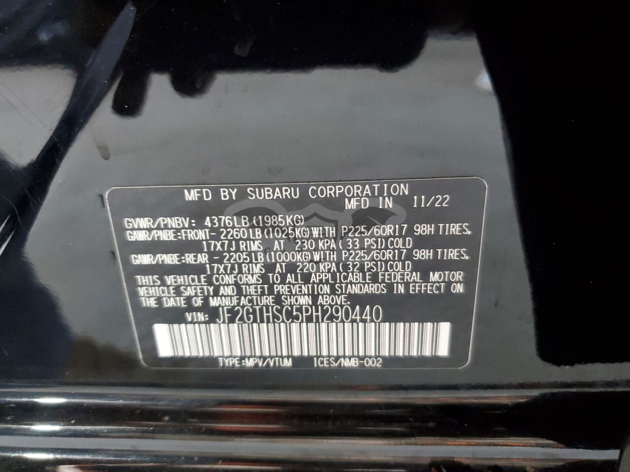 • VIN: JF2GTHSC5PH290440