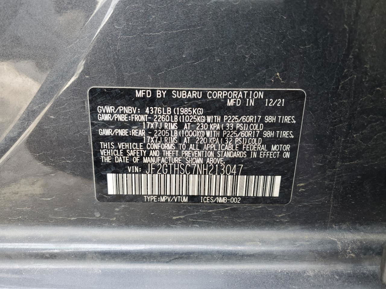 • VIN: JF2GTHSC7NH213047
