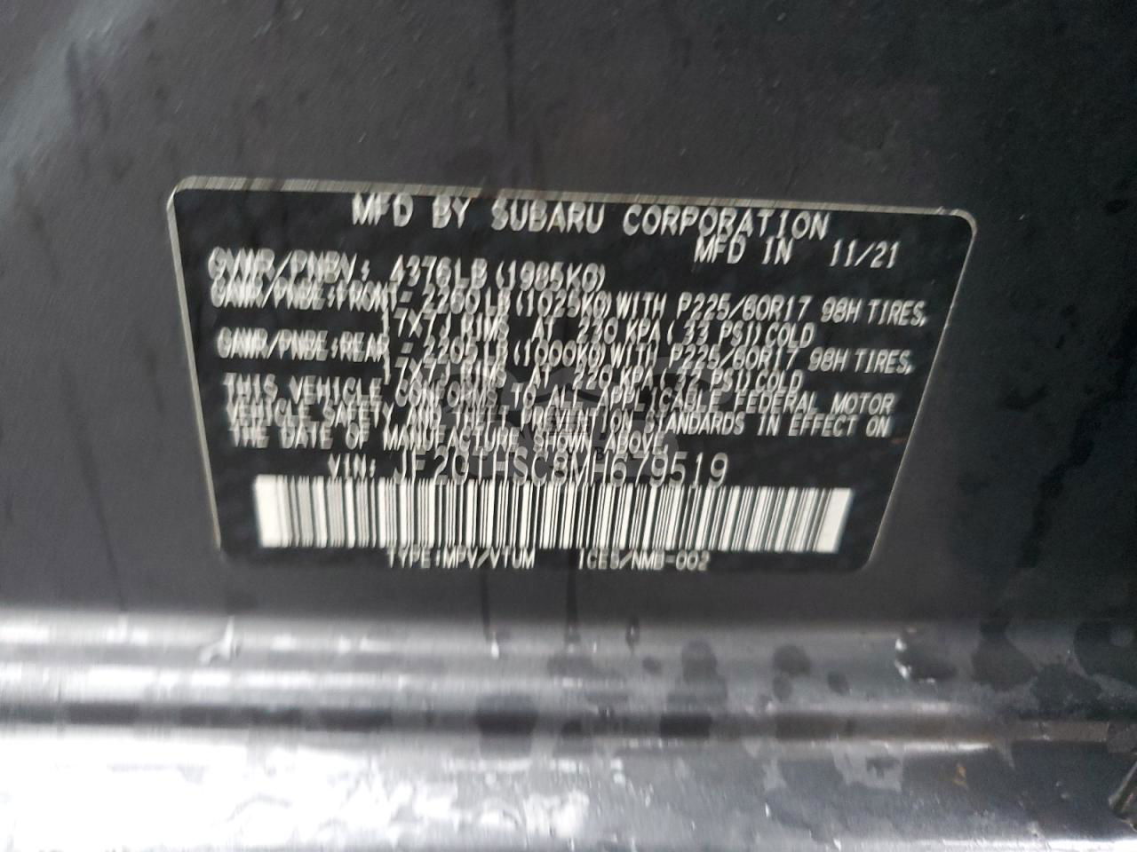 • VIN: JF2GTHSC8MH679519