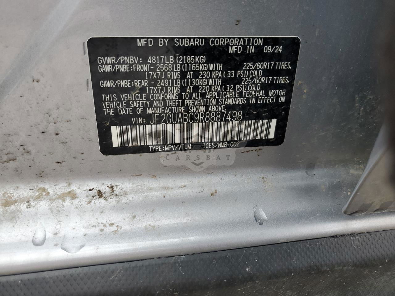 • VIN: JF2GUABC9R8887498